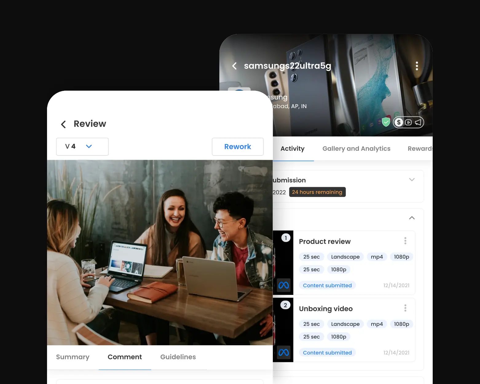 The Content Review page streamlines the feedback loop between brands and creators. Once a creator submits content for a campaign, the brand can review it, leave timestamped or contextual comments, suggest edits, and send it back for revision. Creators can then make updates based on the feedback and resubmit the content—all within the platform. This collaborative workflow ensures clarity, faster approvals, and higher-quality outcomes.
