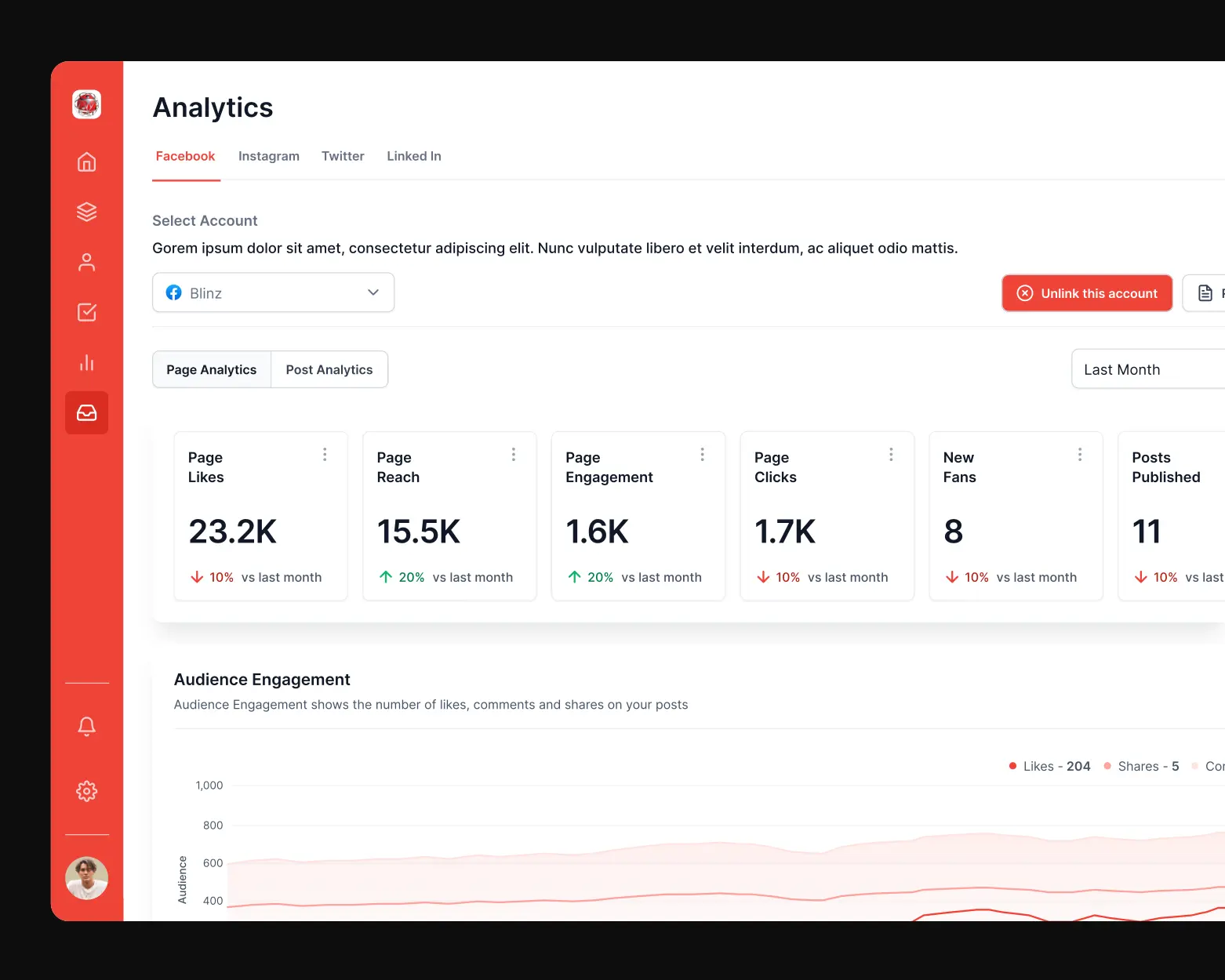 Manage interactions effortlessly using a Social Inbox, centralizing all messages, comments, and mentions from various platforms into one unified interface. Streamline communication for timely responses, ensuring you never miss an opportunity to engage with your audience.