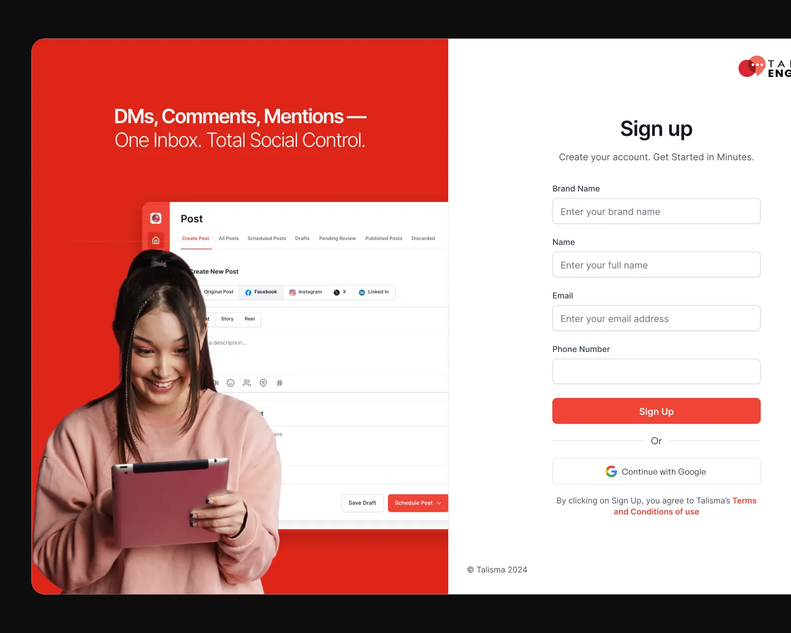 Our solution is tailored for businesses, agencies, influencers, and entrepreneurs who want a fast and easy way to manage their social media activity. Whether that's small and medium businesses optimizing their marketing, agencies working with multiple clients, and content creators that want to enhance engagement, our platform takes the work out of publishing, analyzing, collaborating, and automating. With AI-enhanced content generation, centralized engagement assets, and streamlined review management, we enable our customers to increase productivity and improve engagement and growth from one dashboard.